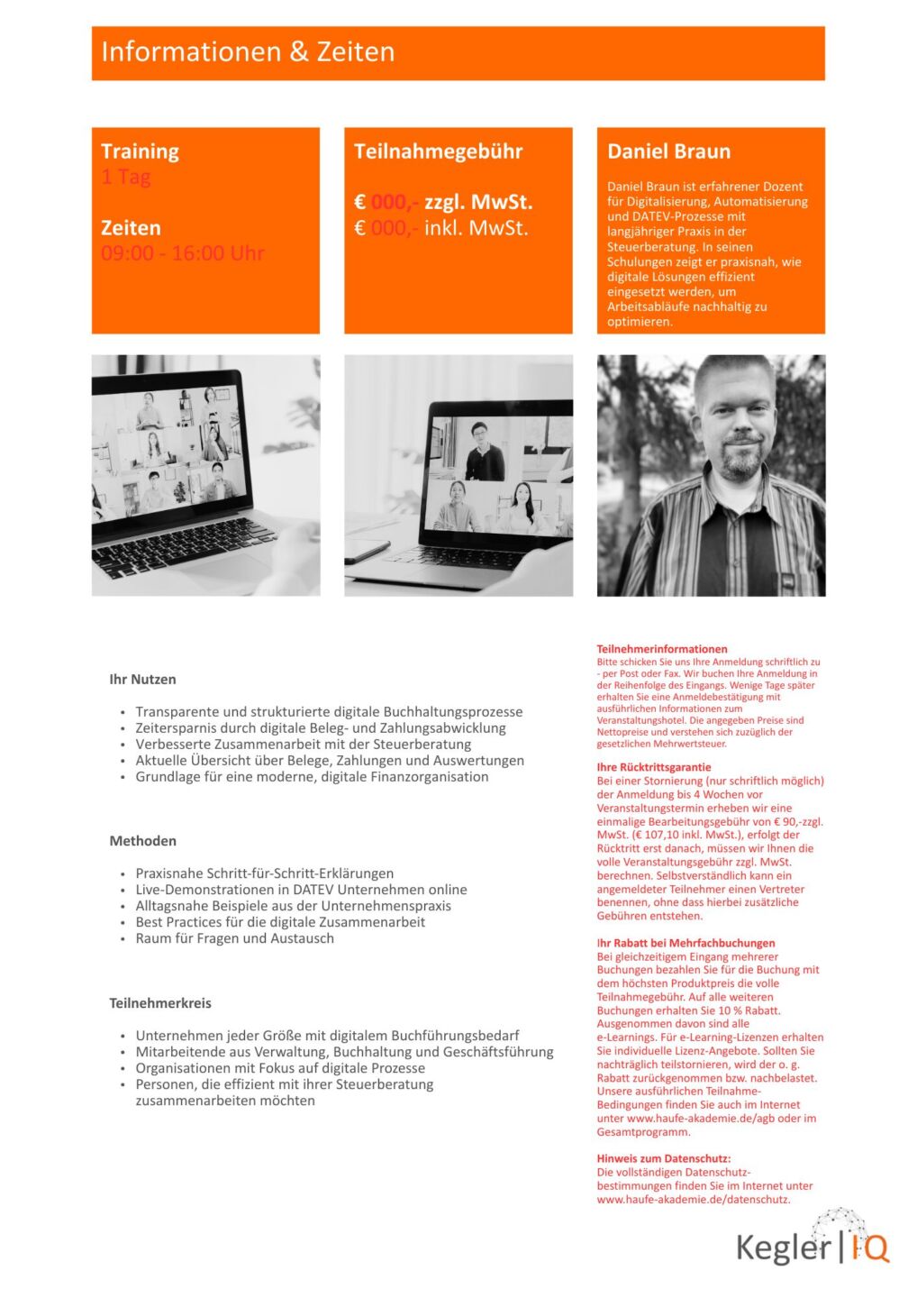 Teilnehmergebühr: € 300,- zzgl. MwSt.